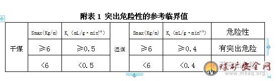 11301采煤工作麵突出危險性預測和防突措施效果檢驗采取用WTC防突參數儀實測煤層瓦斯解吸指標(K1值:mL/g•min1/2)和鑽屑指標法(鑽屑量Smax